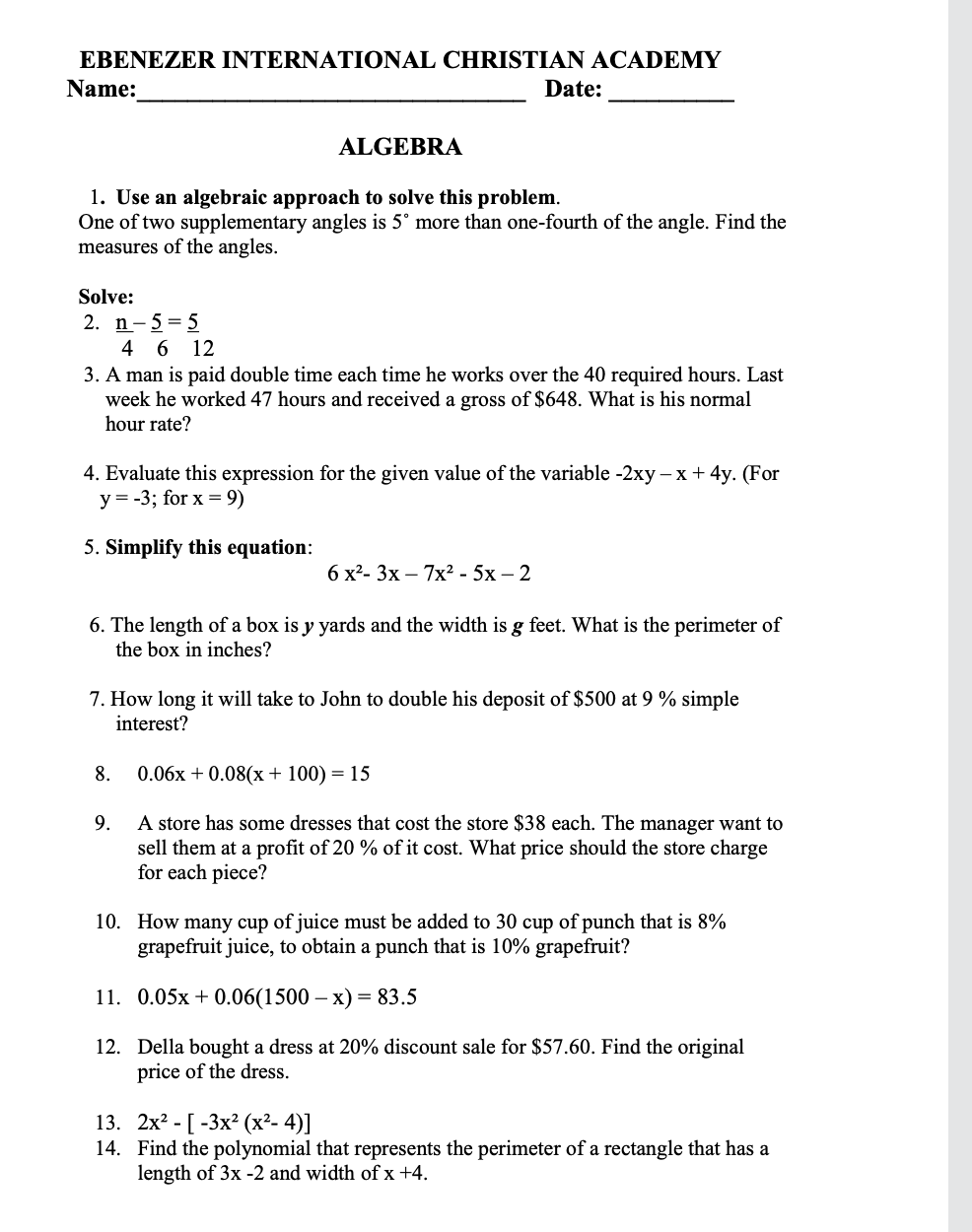 Solved Ebenezer International Christian Academy Name Date Chegg Com